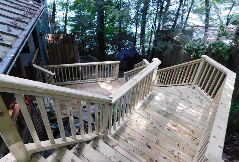 A friend referred Jamey to us when we decided to finish the basement in our home in Quakertown during the fall of 2005. From the very first meeting, we knew that we were dealing with a true professional. Every phone call or email was promptly returned, there were no surprises along the way, and all of the work was completed on time and within our budget. Jamey’s network of subcontractors were some of the best we’ve ever dealt with. Jamey constructed the bar himself, and the pride he takes in his work is displayed in his attention to detail. He approached every piece of the job as if he was doing it in his own home, and we could not be happier with the finished product. When our weekend home in the Poconos needed a new roof in the summer of 2008, we called many Pocono area contractors. Time after time, our phone calls were not returned. After we finally found two local Pocono contractors who were interested in bidding for the work, neither one showed up for the initial appointment, which we made special trips up to attend. After that frustration, we called Jamey. He was thrilled with the repeat business from us, and again completed the work on time and within the budget. This past summer when we decided to add a deck to the front of the vacation home, we called Jamey right away. Needless to say, we love our deck, and would recommend Jamey and his company to anyone searching for a professional, ethical, and responsible building contractor.
